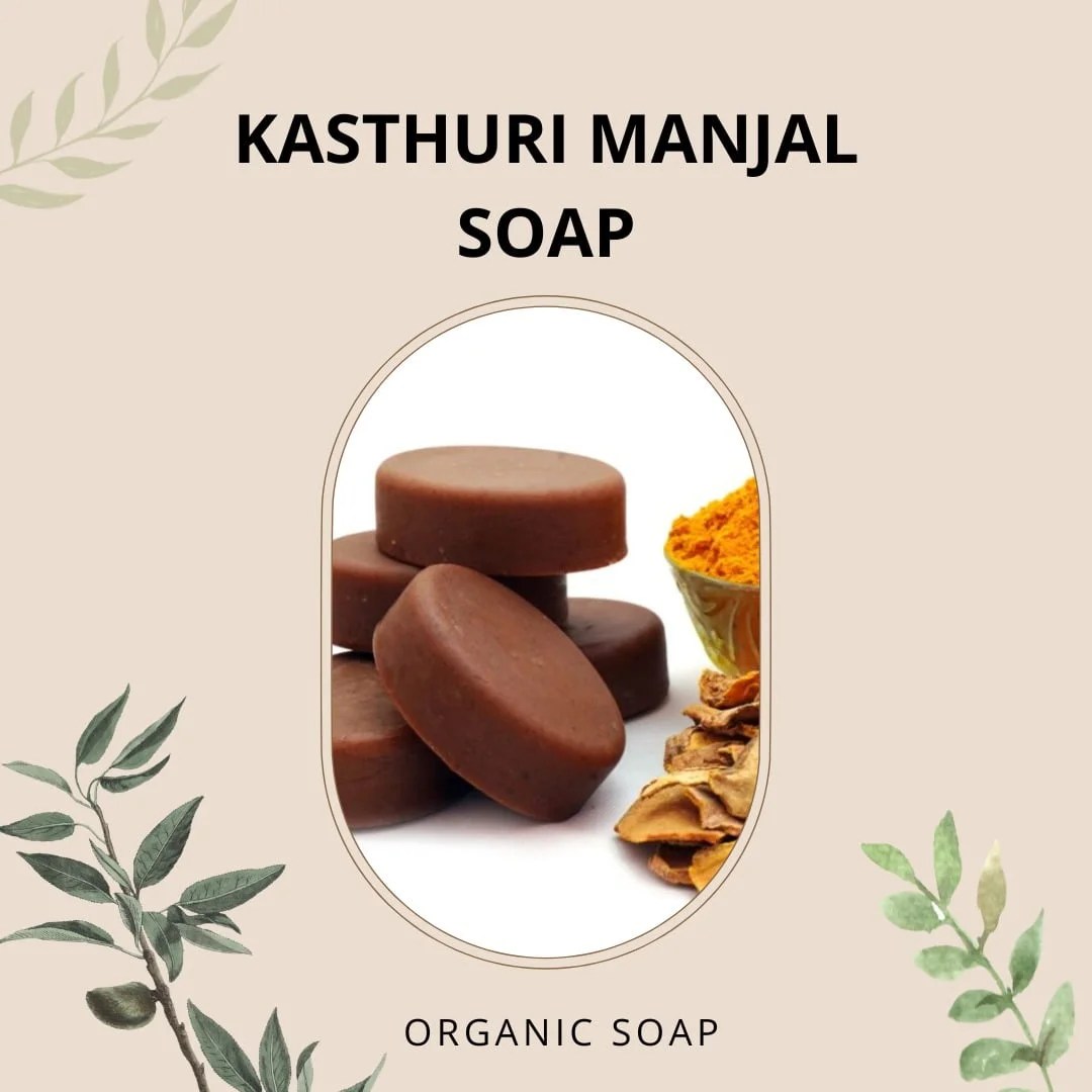Organic Kasturi Manjal soap is also known as wild turmeric soap. It is made with Kasturi Manjal, a specific type of turmeric (Curcuma aromatica) known for its skincare benefits. It’s also referred to as Aromatic Turmeric soap. In some regions, it’s known by its local names like Kasthuri Manjal soap in Tamil, Kasturi Pasupu soap in Telugu, and Kasthoori Manjal soap in Malayalam